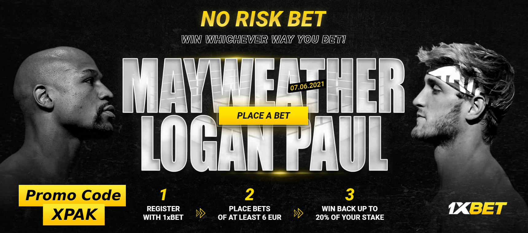 PLACE BETS ON THE FLOYD MAYWEATHER – LOGAN PAUL FIGHT, SCHEDULED FOR 07.06.2021 03:00 (+3 UTC), AND 1XBET WILL REFUND YOUR LOSING BETS!